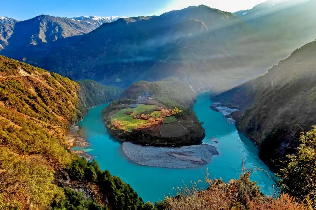 從空中俯瞰,怒江從孤峽絕壁中疾馳而來,歷經(jīng)億萬年沖刷著僵冷的石塊,才展覽成一道能令世界矚目的奇觀。