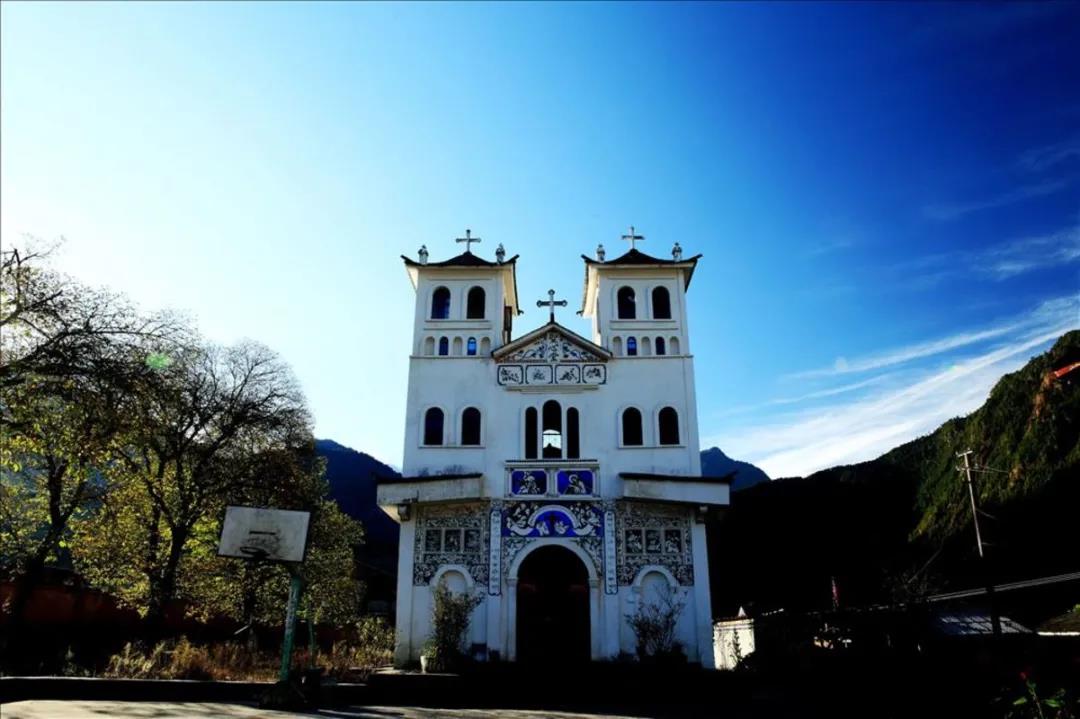 大山深處的哥特式建筑風(fēng)格,堪稱怒江大峽谷中最漂亮的天主教堂。由法國(guó)傳教士任安守耗時(shí)10年于1935年建成,“文革”期間被毀,1996年在原址重建,規(guī)模較之原來的小些,即使略顯簡(jiǎn)陋,但也令人驚嘆,深山之中崇拜自然的民族也會(huì)有不同的信仰。