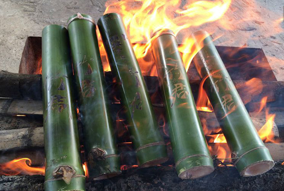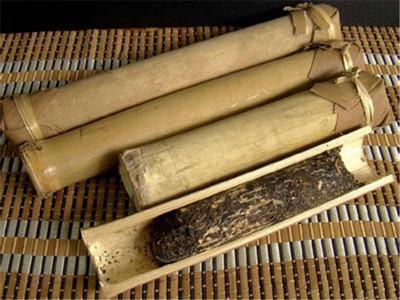 竹筒茶是云南怒江獨具地方風味的特產茶品,由怒江傈僳族自治州貢山一帶怒族同胞所制。竹筒茶的做法就是在特制的竹筒里逐次逐量地放進基本曬干了的茶樹鮮葉,把竹筒放在火塘上邊烘烤邊將茶葉舂壓進去,直至茶葉舂滿竹筒。竹筒茶飲用時需用陶壺煮飲,既有清純的茶香,又有獨特的竹香,極具特色。