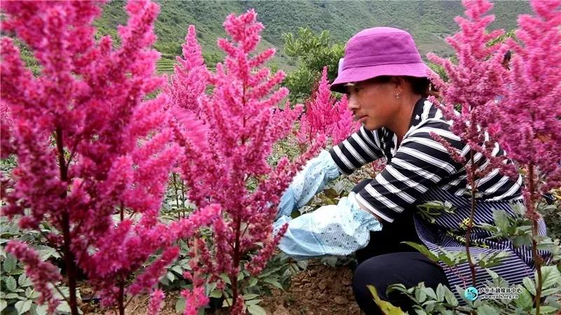 三月末,雪白的繡線菊和玫紅色的落新婦陸續開放,大密扣變成了花的海洋,遠遠望去,如同雪花飛舞,又像一大片紅云。