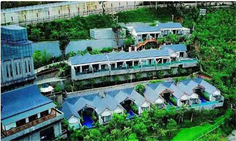 據悉,項目于2019年4月開工建設,2020年9月底建成,占地面積39.5畝,共有客房54間,有無邊恒溫泳池、露天溫泉泡池、兒童樂園、休閑步道、立體停車庫等多項業態。綜合樓內設大堂、全日制餐廳、包房、茶室、多功能會議室、健身房、汗蒸房、景觀露臺及酒店配套用房等多類別用房,為休閑度假的消費者提供五星級綜合性服務,滿足不同客戶的需求。