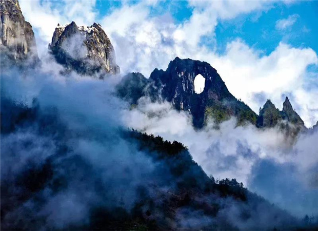 白天,如果天空晴朗之時,怒江峽谷波光閃閃的江灣,嶙峋崢嶸的怪石,蒼翠蔥蘢的樹林,陡峭直立的山梁,把巍峨崔巍的石月亮托上高天。如果恰好有幾朵白云在石月亮邊悠悠徘徊,這景致真是神奇而美麗;如果是在晴朗的夜空,天上就如掛著兩個月亮,一輪明月當(dāng)空,把潔白的月光灑在石月亮上,石月亮顯得格外深邃悠遠(yuǎn),人們仿佛置身于肅穆的神秘世界,心境寧靜安詳。但,她也有嗔怒的時候,每每遇到陰雨天氣,見不到燦爛的陽光,山上的迷霧嚴(yán)嚴(yán)實實蓋裹著羞答答的“石月亮”,你將喪失一睹她芳容的美好時機(jī),請不要沮喪,這只能說明慕名觀賞者緣分不到,可耐心表達(dá)誠意,我們美麗的“石月亮”一定會滿足有緣者的崇拜。