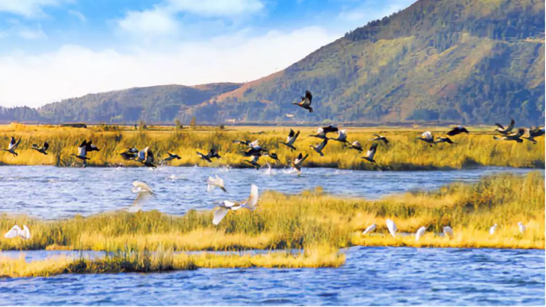 “海子大可千畝,中皆蕪草青青,下如草浮結而成者,亦有溪流貫其間第不能起......”這是徐霞客對騰沖北海濕地的描寫。大概意思是一片片草甸靜靜地漂浮在水面上,盡管溪流貫穿其間,奈何草根緊緊地交錯在一起,卻怎么也濺不起水花,更別說把草甸掀起來了。
