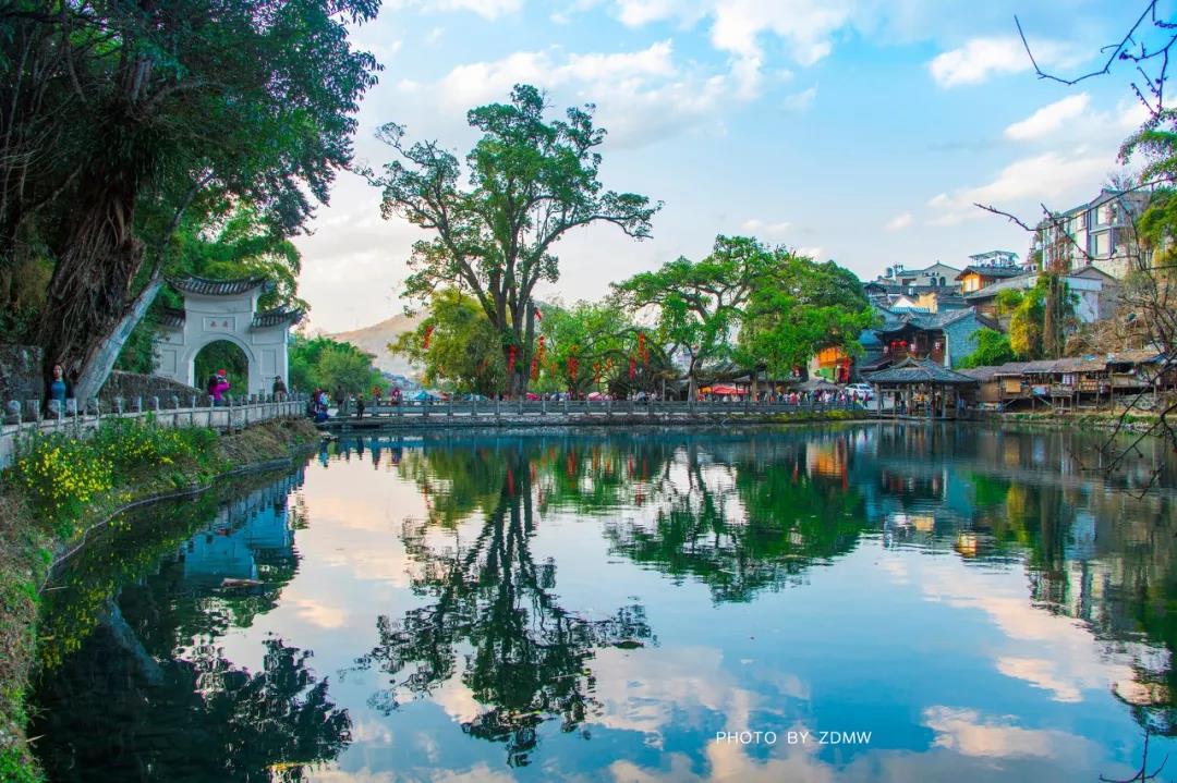 和順古鎮中青石古道悠悠、青翠樹木依依、溪水流響潺潺,恍如是“小橋流水人家,古道西風瘦馬”的詩境。