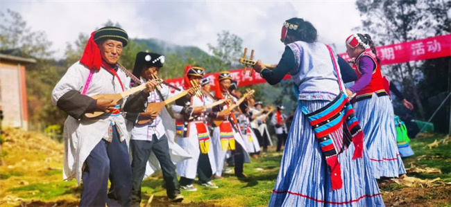 跟著怒江傳媒公司,怒江旅游,怒江定制旅游,怒江非遺文化,怒江達(dá)比亞舞小編一起來看看吧!怒族,是中國人口較少的少數(shù)民族之一,主要分布在怒江福貢、貢山及蘭坪一帶。怒族人民淳樸善良,能歌善舞,達(dá)比亞舞就是是怒族具有代表性的舞蹈之一。因怒族最古老的彈撥樂器“達(dá)比亞”而得名,樂器“達(dá)比亞”又稱“達(dá)表”“達(dá)變”,外形似琵琶、四弦,可彈奏出不同旋律的怒族傳統(tǒng)音樂,共有12種定弦法。相傳在很久以前獨(dú)居巖洞的怒族孤兒為了消遣枯燥乏味的生活將黃桑掏空,棕櫚毛為弦,制成外型似梨的樂器“達(dá)比亞”。每當(dāng)夜幕降臨,他都會(huì)彈奏琴聲悠揚(yáng)、清脆的“達(dá)比亞”引來了無數(shù)的小動(dòng)物,也吸引來了一位美麗勤勞的怒族姑娘。兩人就此結(jié)為夫妻,恩愛不已,從此怒族青年男女,以彈奏“達(dá)比亞”傳達(dá)愛慕之情,以跳達(dá)比亞舞增進(jìn)情感交流。