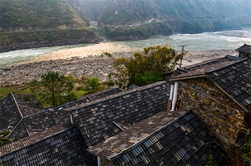 我們順著怒江由南往北,來到江水西岸的洛本卓白族鄉(xiāng),鄉(xiāng)政府再往北4公里,有一片錯落的石頭房子,蓋在高黎貢山腳下的壩子里,山上一股泉水流進怒江,這里便是托拖新村。