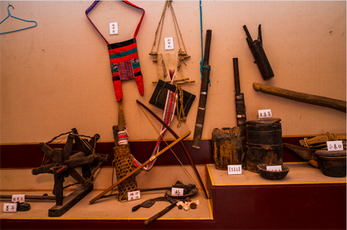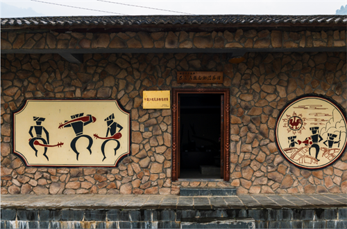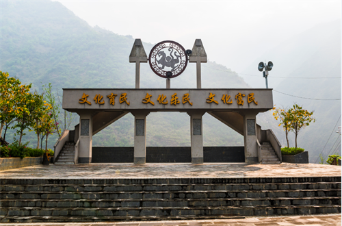 廣場南邊,有一座巴尼民族文化傳承館。館內(nèi)陳列著巴尼人服飾、生產(chǎn)和狩獵用具等,還有巴尼人的氏族圖騰崇拜以及五大節(jié)日興漢積(嘗新節(jié))、助然積(臘月節(jié))、助化圍(火把節(jié))、尚旺節(jié)(生產(chǎn)節(jié))、助架旺(新年)的來源文字簡介。廣場東面,是一座牌樓,牌樓上寫著“文化育民,文化樂民,文化富民”十二個金邊大字。