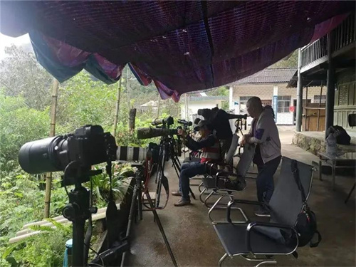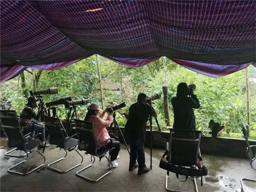 說干就干,張朝江開始在三河村蹲點(diǎn),早觀察、午投食、晚監(jiān)測(cè)……在山上一住就是幾天。2018年1月1日,在袁開友的資助下和張朝江的日夜觀測(cè)選址后,三河村建起了2個(gè)觀鳥點(diǎn)作為試點(diǎn)。觀鳥點(diǎn)也被稱為鳥塘,搭建在鳥類棲息地的邊緣,經(jīng)過偽裝后很難被鳥發(fā)現(xiàn)。每個(gè)鳥塘設(shè)置8個(gè)機(jī)位,可以供鳥類研究者、攝影愛好者潛伏在偽裝棚內(nèi)觀察、拍攝。
