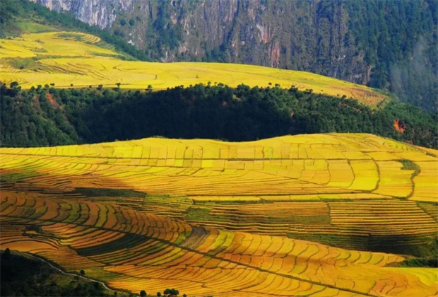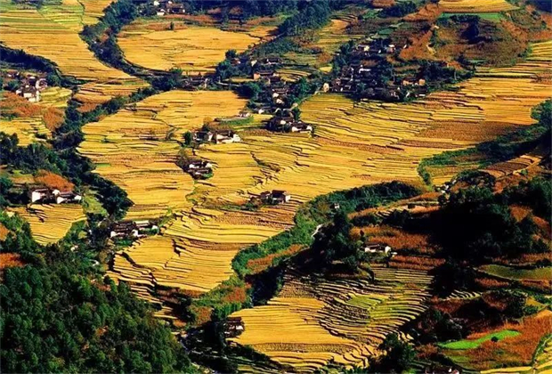 無(wú)論是北上而來(lái)還是南下而至,行經(jīng)大峽谷彎彎曲曲的幾道彎,映入眼簾的就是這塊開(kāi)闊的臺(tái)地,景色變換,讓人眼前豁然開(kāi)朗。可謂是“土地平曠,屋舍儼然……阡陌交通,雞犬相聞。”此時(shí),壩子的中心區(qū),每天迎接著前來(lái)拍照打卡的游人,不需要濾鏡,原圖直出即可收獲許多好評(píng)。