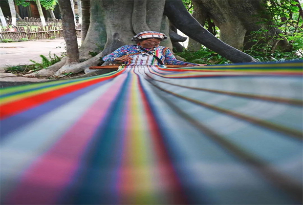 獨龍族“紋面女”正在編織“獨龍?zhí)骸?