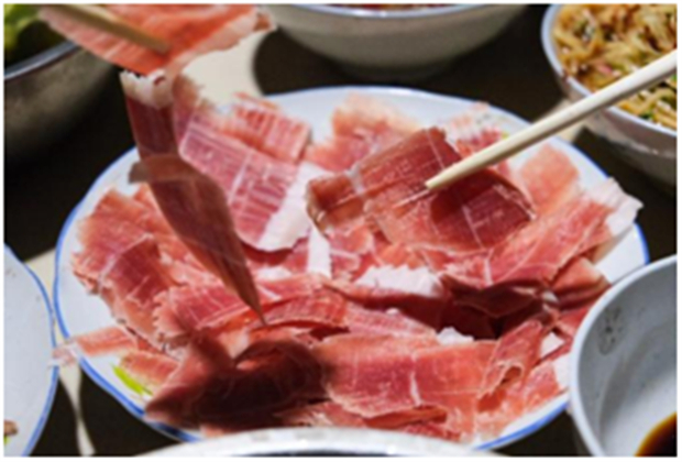 美食線路規劃:芒寬牛肉—老窩火腿—漆油雞—傈僳手抓飯—烤乳豬—煮江魚—羊湯燒烤