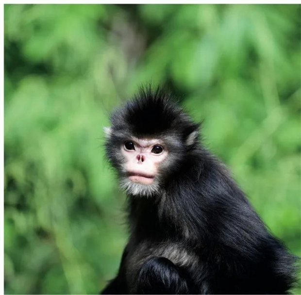 我們的毛發配色和國寶大熊貓相似,通體黑色,耳朵、臉頰有少量的白毛,白色的耳羽尤為明顯,所以我們大概率也拍不了彩色照。而最具特征的就是我們豐滿性感的嘴唇和上翹的鼻子,但也正因為這朝天鼻,也成了我們的負擔,因為下雨的時候雨水就會流進鼻孔,讓我們忍不住打噴嚏。所以下雨的時候如果遇到我們,就會看到我們排排坐地把頭埋在兩膝之間,場面多少有點搞笑。